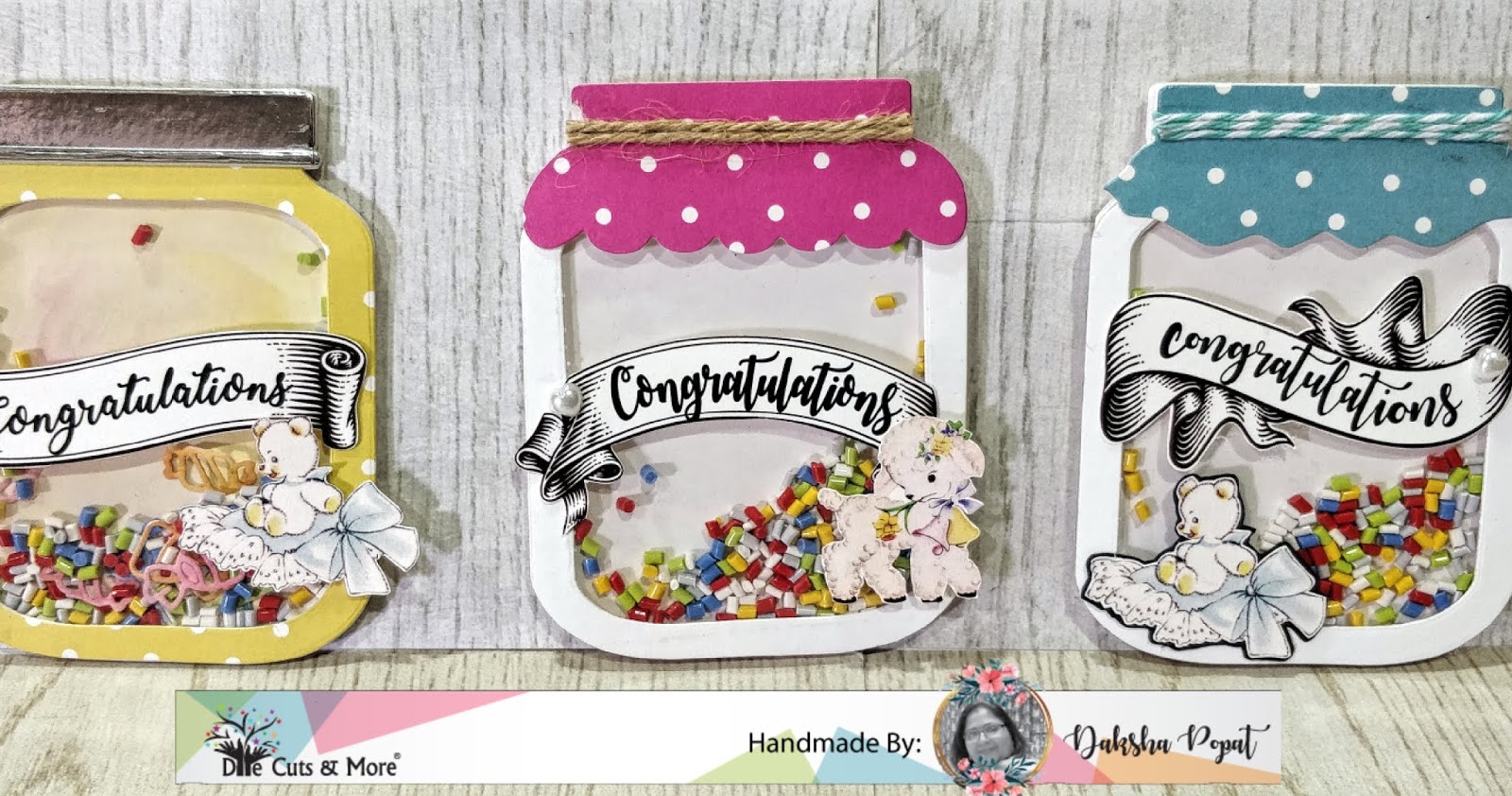 For today's DT post, I have made mini cards cum tags or gift toppers..this you can use it as card or can use it as tag also or you can stick this on your gift.. I have used Mason jar shaker die, 'bundle of joy' ' sentiment banners' critter sheets and shaker beads etc .. by DCAM store.